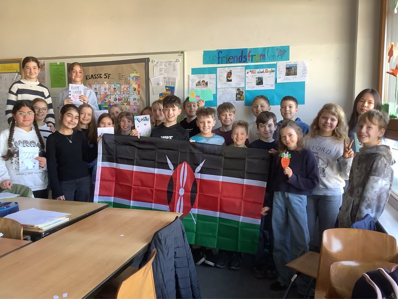 Wie leben Kinder in anderen Ländern? Wie sieht ihr Schulalltag aus? Diese Fragen stellten sich die Schülerinnen und Schüler der 5F im Englischunterricht. Gern hätten sie dazu die Lehrbuchkinder befragt. Weil das aber nicht möglich ist, schrieben sie kurzerhand Briefe an drei gleichaltrige Kinder in Nairobi, Kenia. „Wir haben ihnen als erstes einen Brief geschrieben, in dem wir etwas über unsere tolle Schule geschrieben und Fragen gestellt haben,“ berichten Marie und Emily. Dabei konnten die Schülerinnen und Schüler zeigen, was sie in diesem Schuljahr in Englisch schon alles gelernt haben. Da die Post nach Kenya sehr langsam ist, wurden die Briefe digital verschickt. Die Freude bei Njeri, Wema und Brayden war groß, und so ließ auch ihre Antwort nicht lang auf sich warten. „Die drei haben über sich und ihre Schule erzählt. Es war sehr spannend, den Brief zu lesen,“ meint Marie, und Emily ergänzt: „Mit den Informationen konnten wir eine Mind-Map erstellen und sie vor der Klasse präsentieren. Das hat sehr viel Spaß gemacht!“ Inzwischen sind selbstgebastelte Ostergrüße auf dem Weg nach Kenia. Die Schülerinnen und Schüler der Klasse 5F warten schon gespannt auf die Rückmeldung und hoffen, bald noch viel mehr über ihre Brieffreunde in Kenia zu erfahren.
