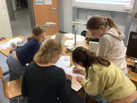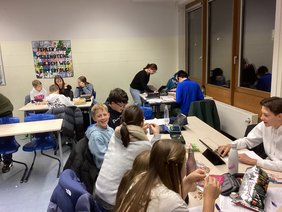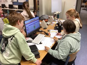 In den folgenden Stunden wurde voller Konzentration gerechnet, ausprobiert, verworfen und neu gedacht. Die Teams arbeiteten hochmotiviert zusammen, tauschten Ideen aus, diskutierten Lösungswege und unterstützten sich gegenseitig. Die Lehrkräfte standen ihnen dabei mit hilfreichen Tipps und aufmunternden Worten zur Seite.