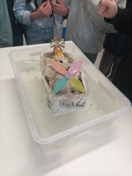 Am 26.06. versammelten sich in der 5.-7. Schulstunde 103 Sechstklässler*innen in den Physikräumen, um in 33 Gruppen gegeneinander anzutreten und einzig unter Zuhilfenahme von Eierkartons, Paketklebeband und einer Menge Phantasie ein Boot zu erschaffen, das nicht nur seetüchtig zu sein, sondern auch bestimmte weitere Kriterien zu erfüllen hatte. So gab es Anforderungen an die Maße (25 cm x 25 cm x 25 cm), die Masse (möglichst leicht!) sowie an die Nutzlast des Kahns: eine aufrecht (!) stehende, gefüllte 500-ml-Flasche musste mindestens fünfzehn Sekunden vom Nachen ohne Havarie getragen werden. Eine große Hürde, wie sich herausstellen sollte: einzig die Gruppe mit dem minimalistischen Namen „Boot“, bestehend aus den Schülern Marlon Ardis, Titus Asshauer, Lenn Koberstein und Ben Woste, fabrizierte eine Barke, die länger denn die geforderten 15 s standhielt. Abgesehen von den Booten der drei Gruppen „heavy core“, „Kiddies“ und den „smashen Potatoes“, die es immerhin je auf etwa 10 Sekunden brachten, teilten alle anderen Boote, ohne Ladung seetauglich oder nicht, nach Beladung instantan das Schicksal der Titanic.