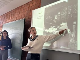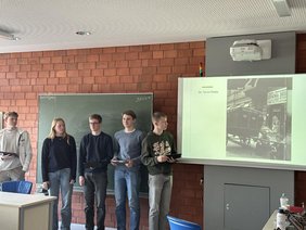 Am Nachmittag stand der Aufstand im Warschauer Ghetto 1943 im Mittelpunkt: Gemeinsam wurden Quellen aus Opfer- und Täterperspektiven ausgewertet. Dass der „Stroop-Bericht“ und das daraus stammende zynische Zitat „Es gibt keinen jüdischen Wohnbezirk in Warschau mehr!“ von einem in Detmold geborenen und aufgewachsenen Täter stammen, war für die Schüler:innen neu. Augenzeugenberichte von Kämpfer:innen des Warschauer Ghettos verdeutlichten das Selbstverständnis derselben, die aufrecht und mit Würde ihr Leben opferten. So konnten die Schüler:innen abschließend den Ghetto-Aufstand als Symbol des bewaffneten jüdischen Widerstandes erfassen.