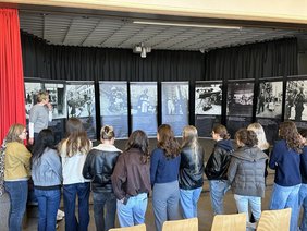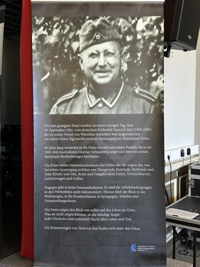 In der Schule besuchten die Schüler:innen die Ausstellung „Das Getto“, die von der Gesellschaft für Christlich-Jüdische Zusammenarbeit Paderborn e.V. konzipiert und vom Stadt- und Kreisarchiv Paderborn zur Verfügung gestellt wurde. Ausgewählte Fotografien, die der deutsche Wehrmachtssoldat Heinrich Jöst im September 1941 im Warschauer Ghetto gemacht hatte, zeigten die unmenschlichen Lebensbedingungen im Ghetto. Um jüdisches Alltagsleben im Ghetto in all seinen Facetten sichtbar zu machen, verglichen die Schüler:innen anschließend die Fotografien Heinrich Jösts mit Augenzeugenberichten jüdischer Zeitzeug:innen zur Errichtung des Ghettos, zur Versorgungslage, zu Kultur und Bildung sowie zu Selbstverwaltung und Tod im Ghetto. So wurde die einseitige Perspektive der Fotografien aufgebrochen und jüdisches Alltagsleben sichtbar gemacht.